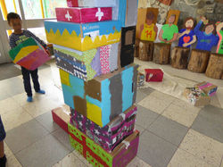 Wer jetzt bei uns ins Schulhaus kommt muss durch Kunst durch: Unser neues Doppeltor zwingt dich zu entscheiden: Links? Rechts? Jedenfalls beschwingt und bunt gelaunt kommt man in das Gebäude!